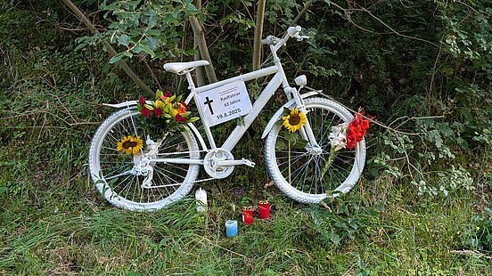 60 Menschen nahmen an der Mahnwache teil und legten Kerzen und Blumen neben das Ghostbike, das zur Erinnerung des getöteten Radfahrers gegenüber der Unfallstelle auf der Kreisstraße LAU13 in der Böschung steht. Trotz des traurigen Anlasses haben sich die anwesenden Angehörigen überschwänglich beim ADFC und allen Teilnehmer:innen für die Anteilnahme bedankt.